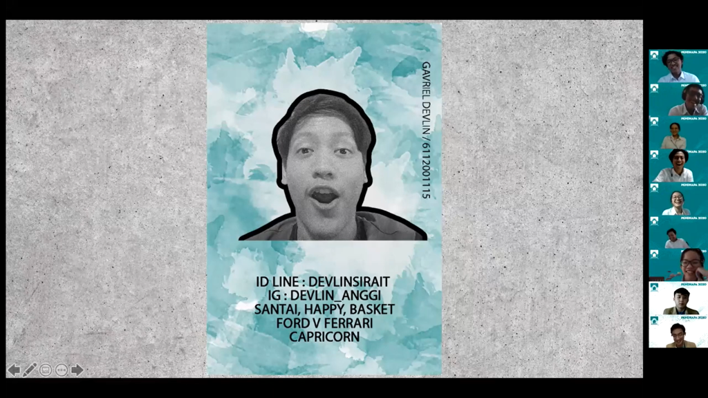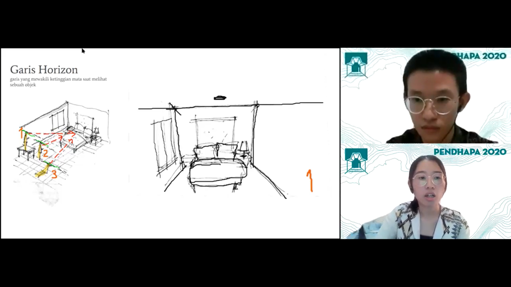 Setelah itu, mahasiswa baru juga bermain game menggambar dengan menggunakan fitur whiteboard pada aplikasi Zoom. Dalam game ini, mahasiswa baru diminta untuk membuat rumah yang diperuntukkan bagi mereka. Mahasiswa baru diajak untuk berdiskusi tentang tema atau konsep rancangan dan kemudian menggambarkan denah serta tampak atau perspektif eksterior dari bangunan tersebut. Kegiatan  Pengayaan kemudian diakhiri dengan workshop dari Puslat Mekar tentang menggambar perspektif dengan fokus pada pembelajaran analisis dan mengomunikasikan ruang dalam bentuk gambar yang berkomposisi.